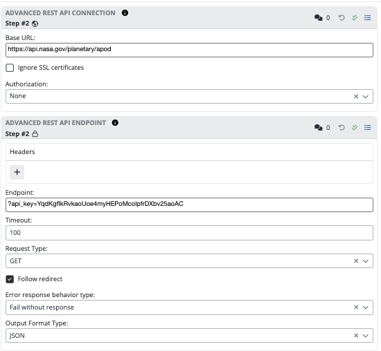 The Advanced Rest API connector allows you to communicate with other REST services using the HTTP protocol with basic request types, i.e. GET, POST, PUT, PATCH, and DELETE. It also supports many of the most commonly used authentication methods (OAuth2, Token, NTLM,...). This is identical to the Rest API connector.