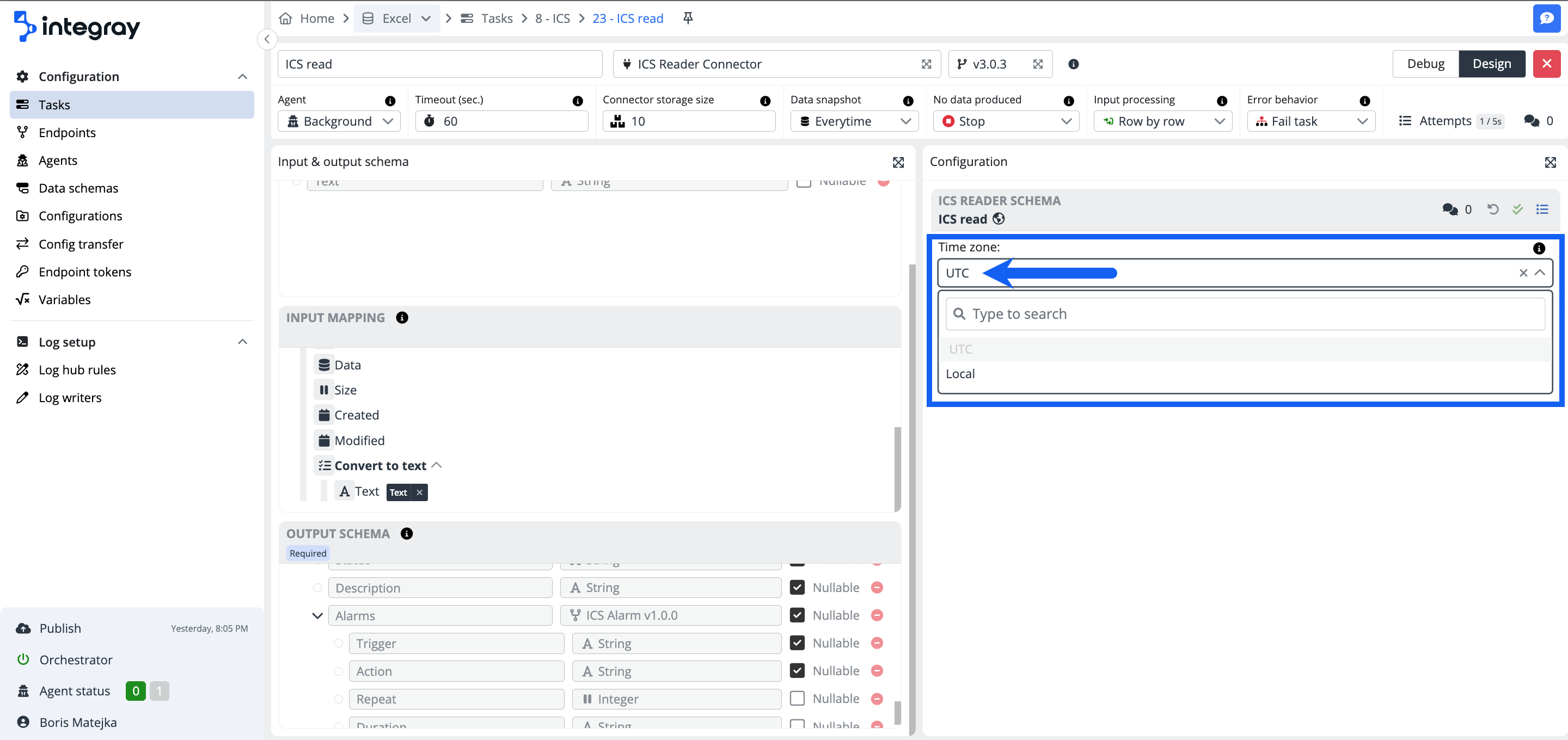 The ICS writer connector requires a specific structured input including above mentioned multiple components and returns a text format output.