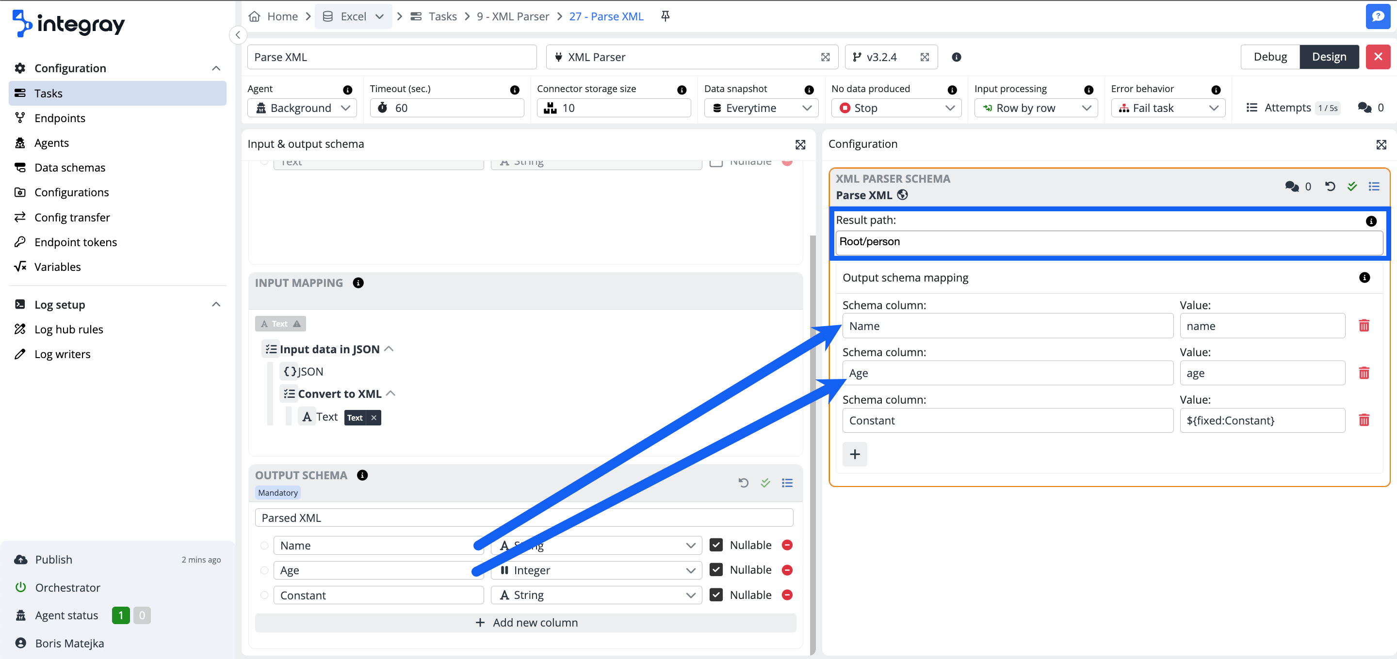Output schema mapping