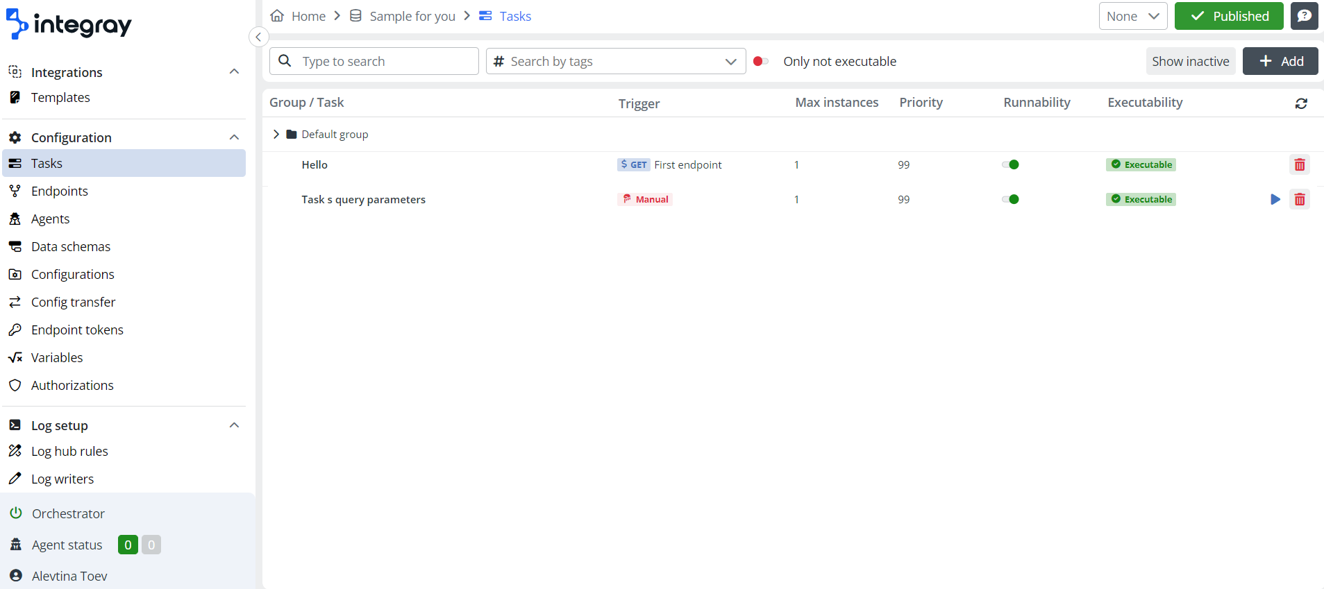 After logging in to the Trial, you received a ready-made company Sample for Your Name with a task and an endpoint.