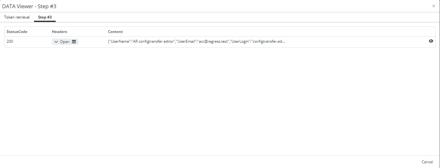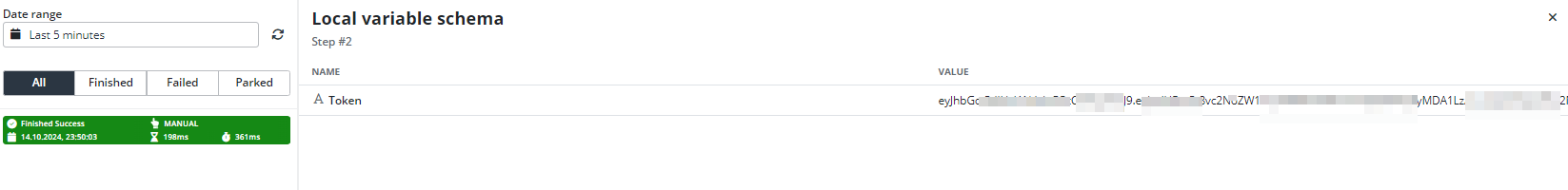 Open Local Variables in the second step, and we will see that the Token field is filled with the Token value.