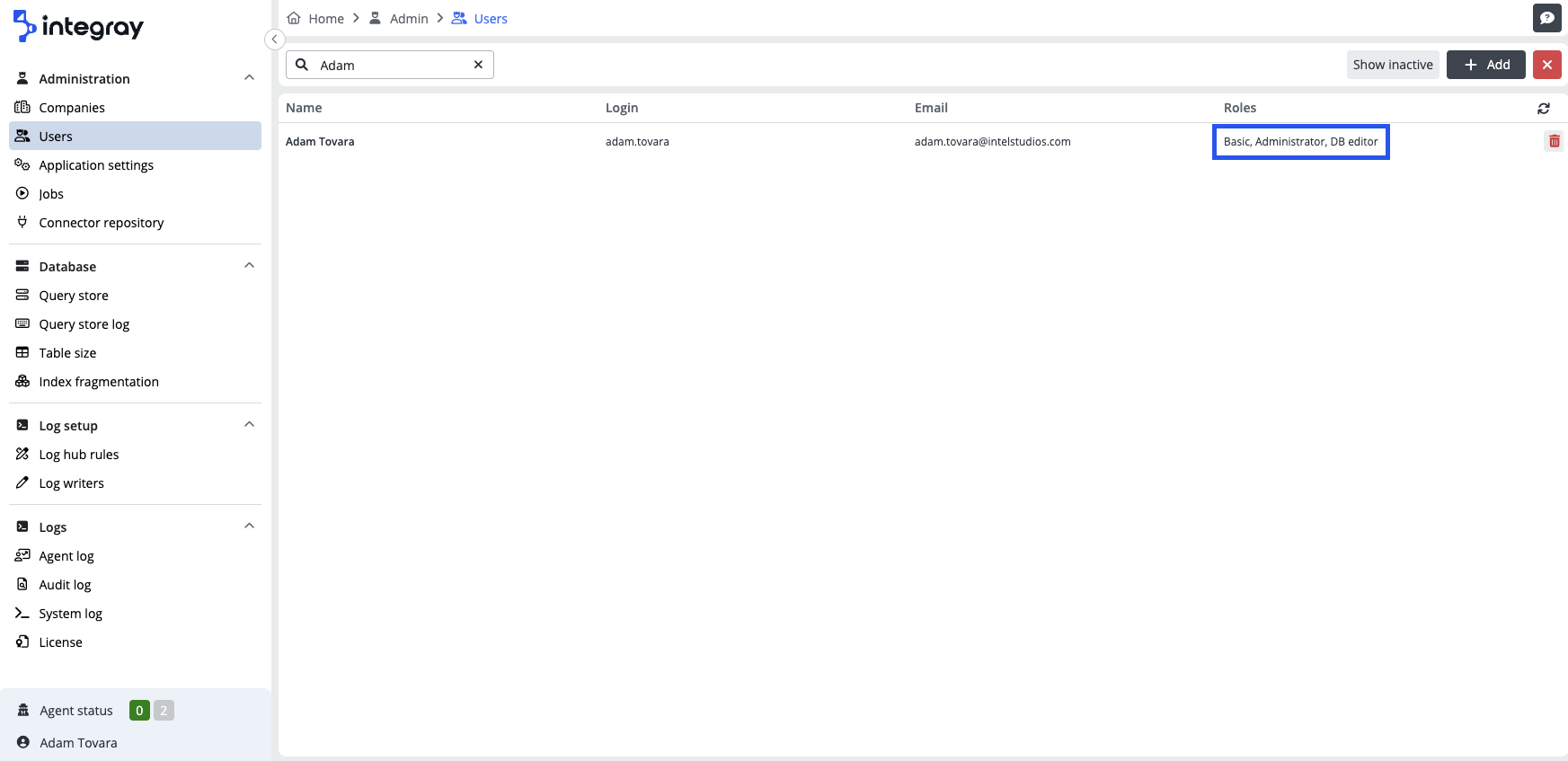The Administrator role is automatically obtained by the user who installed the Integray environment or was assigned to him by another Administrator.