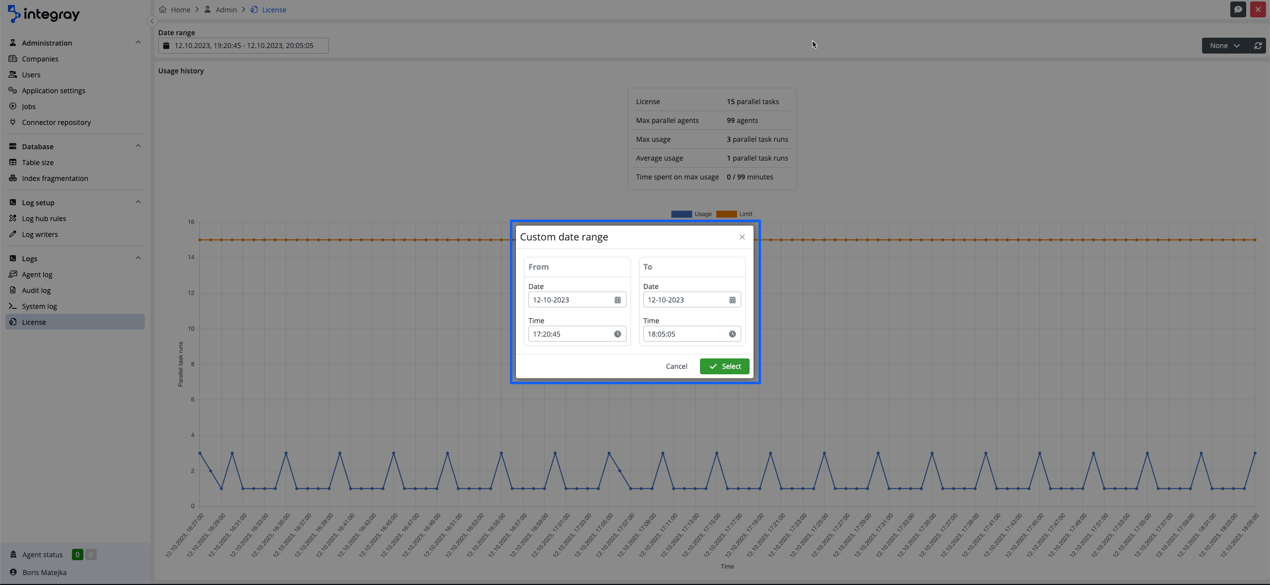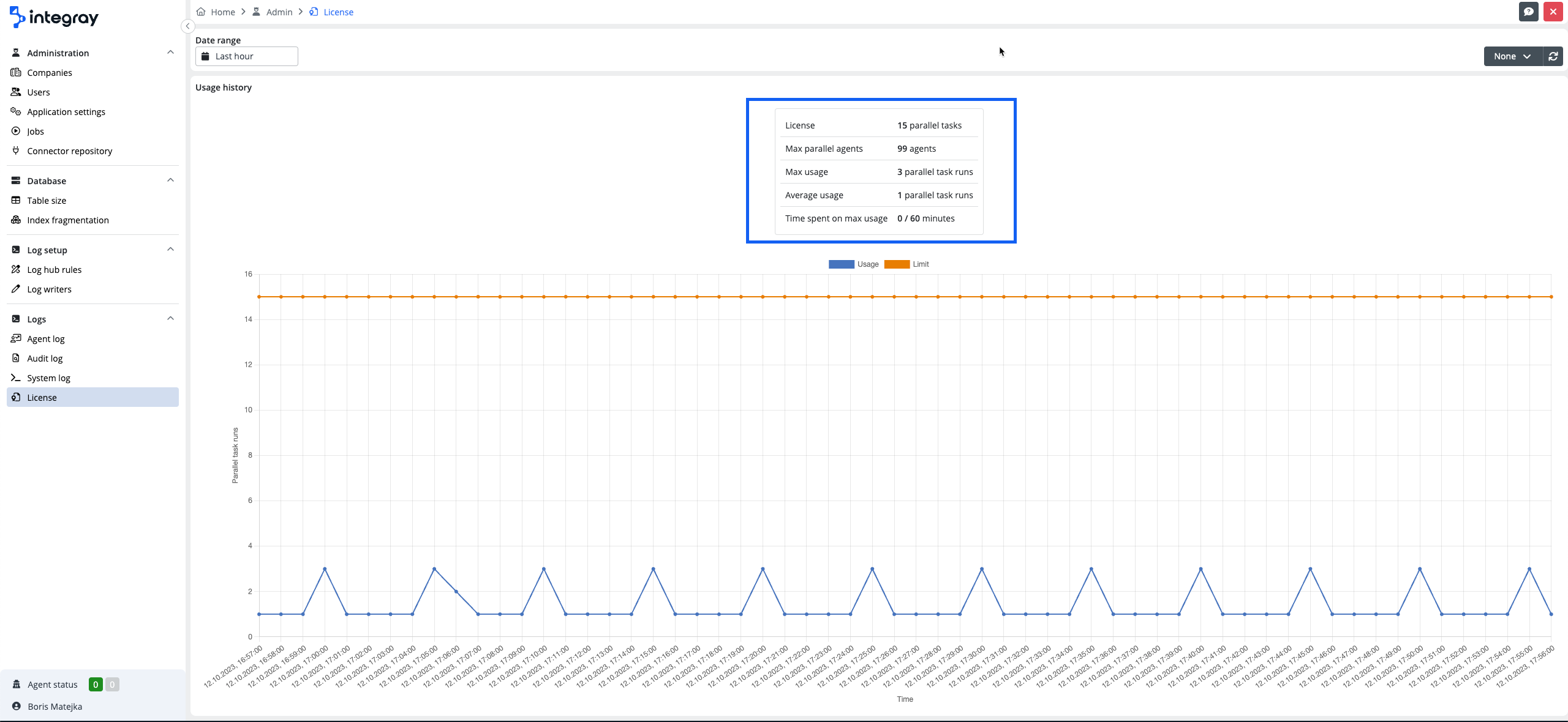 The Administrator can use this one as an additional source of information besides the task run analysis, where processing, execution, and waiting times are analyzed, to optimize the integrations setup and configurations. One of the potential issues of the high waiting time and, therefore, entire integration processing time is the insufficiency of the purchased licenses. The max usage and time spent on max usage deliver the required insight and immediately reveal whether the issues are connected with the license limits.
