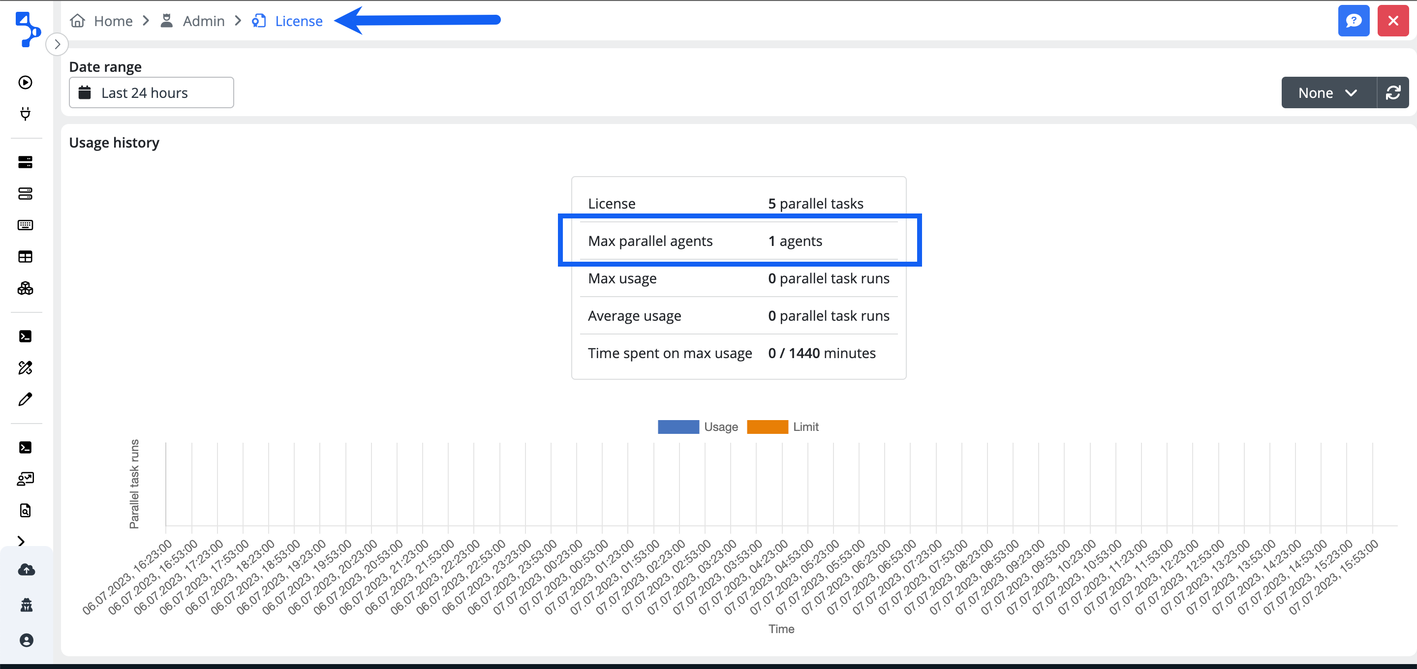 You can check the number of max allowed parallel online agents in the role of Administrator in the Administration > Licenses.