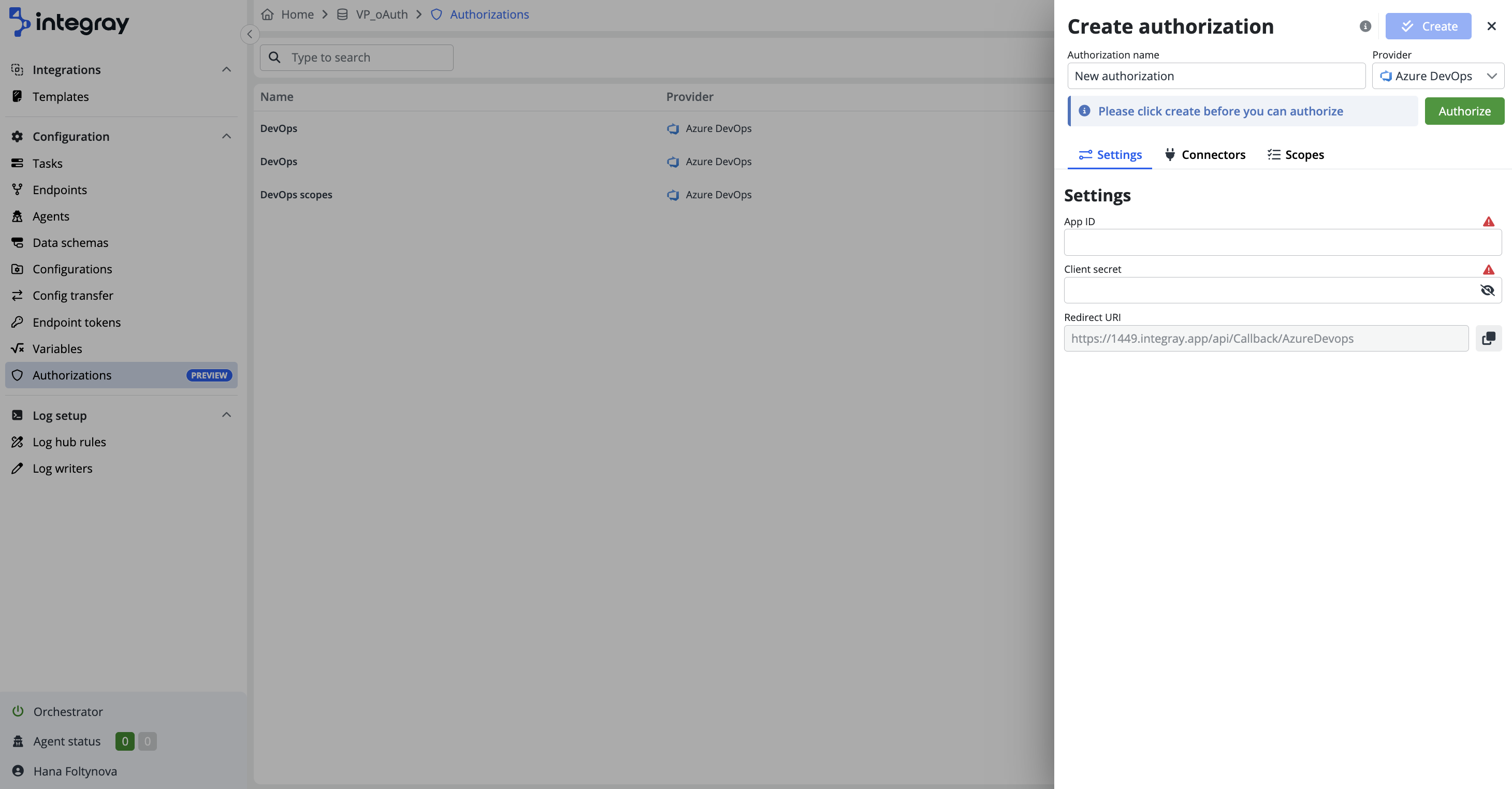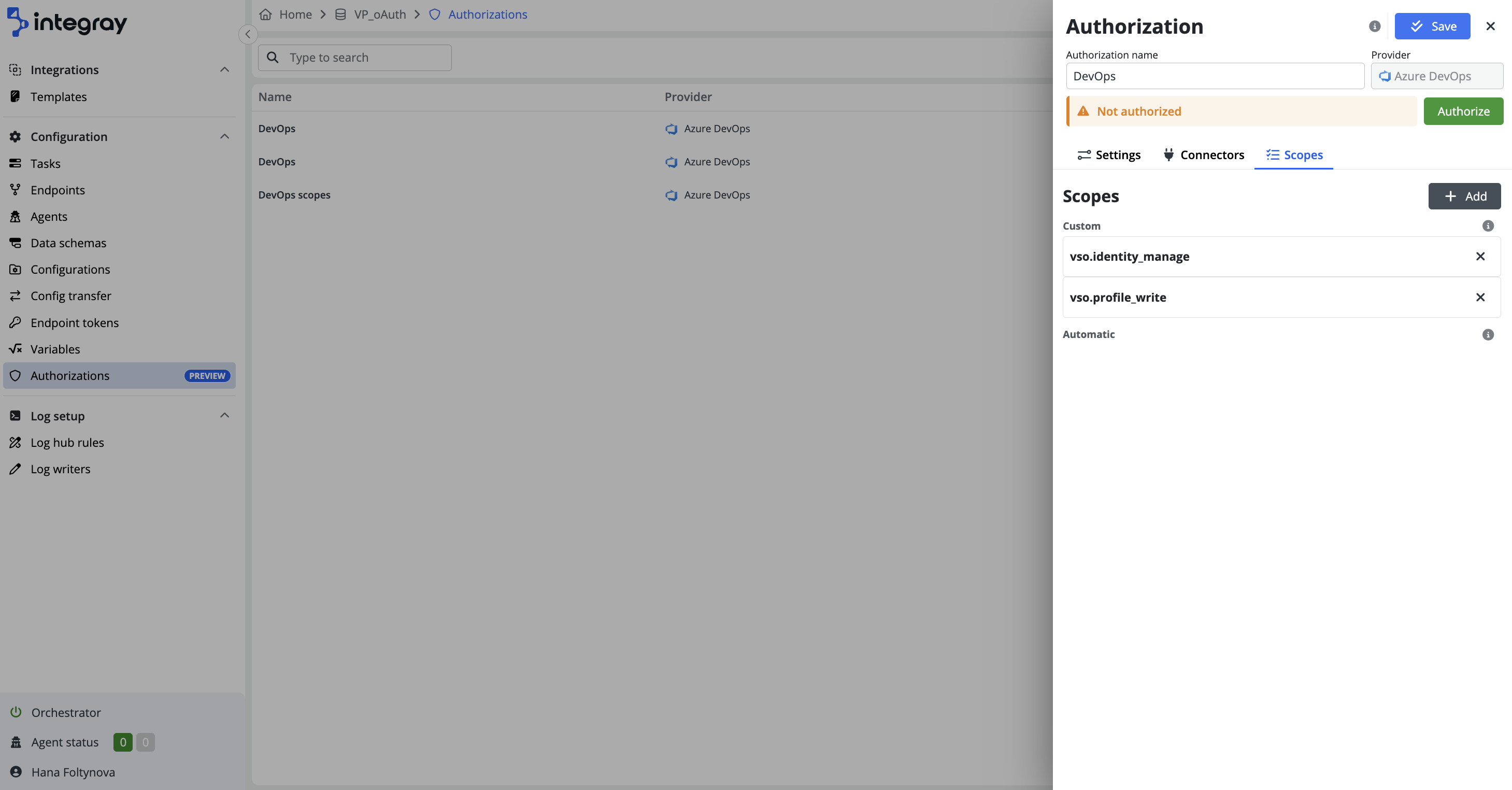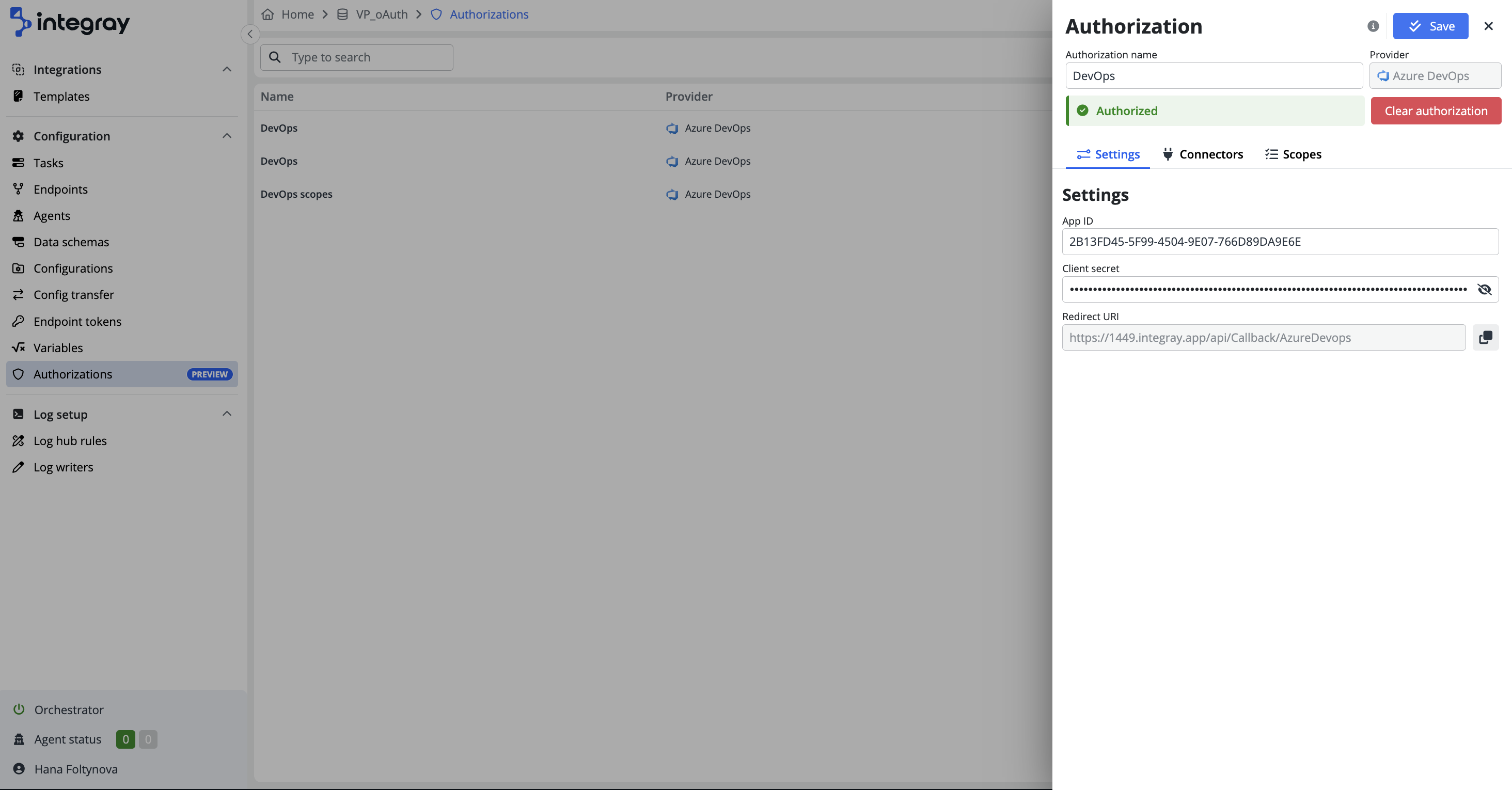 When you use authorization with a predefined provider in Integray, such as Azure DevOps, the setup process is efficient and straightforward due to the pre-configured settings.