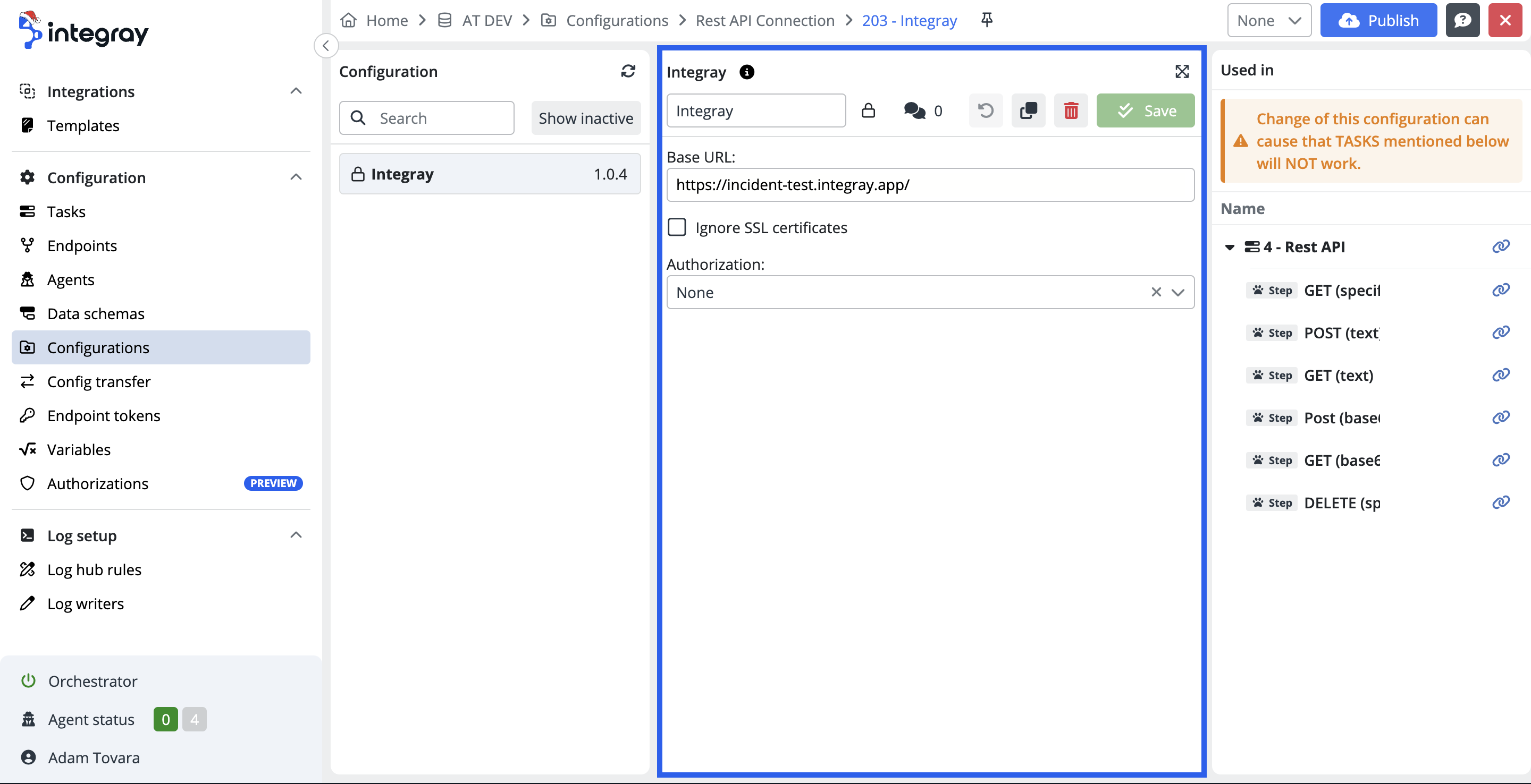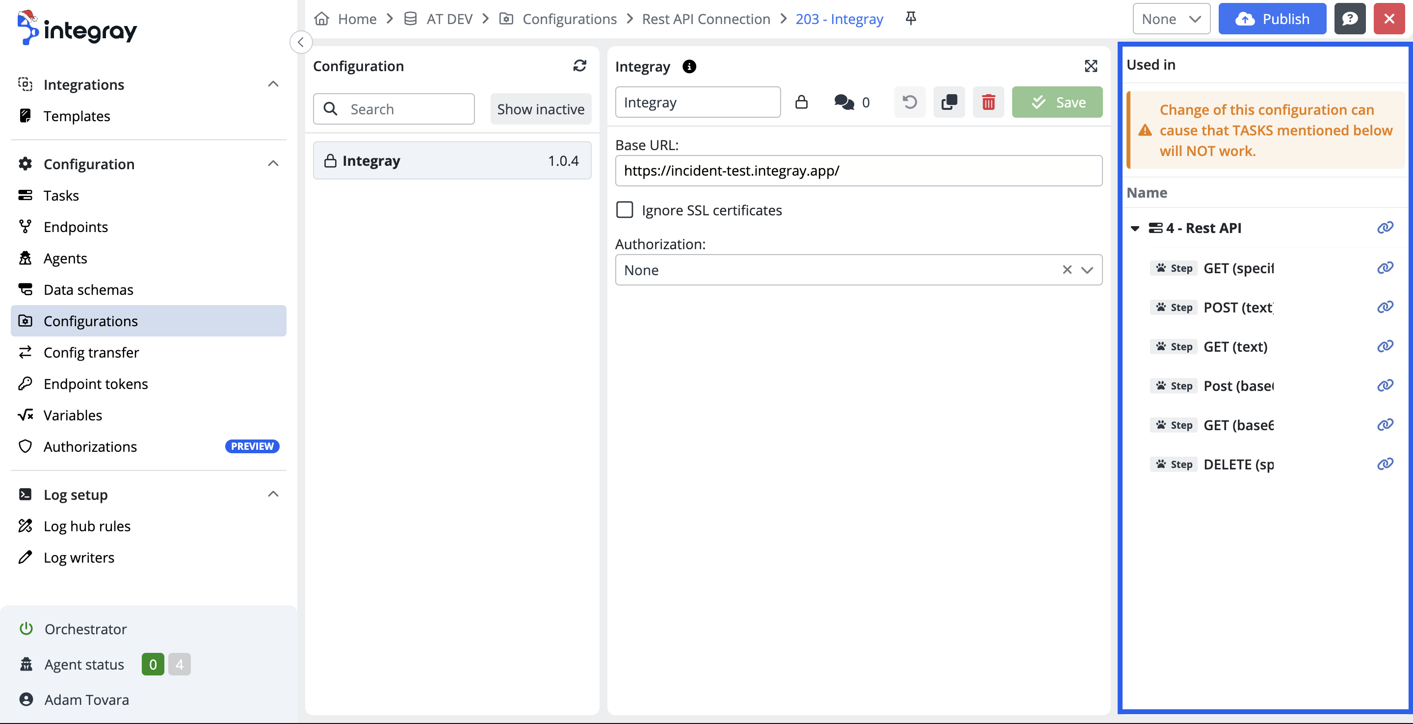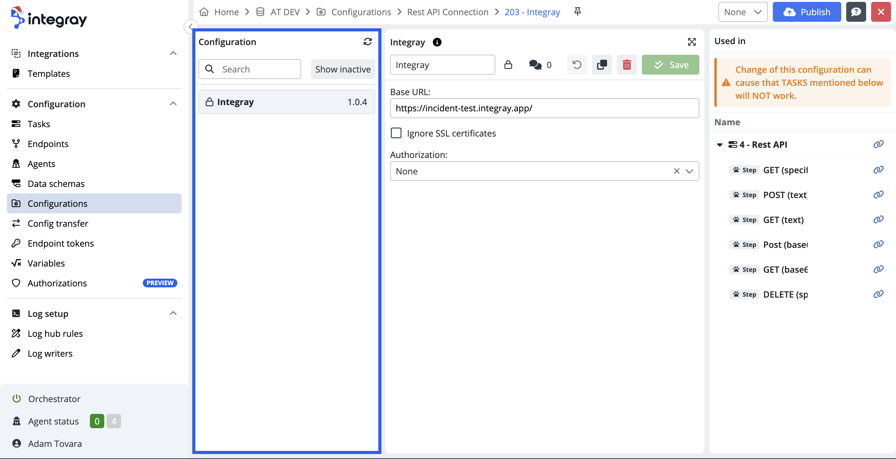 The purpose of having the section of configurations is to have them available for management and maintenance in one single location without the need to access individual intergration tasks and their steps to execute any updates or amendments.