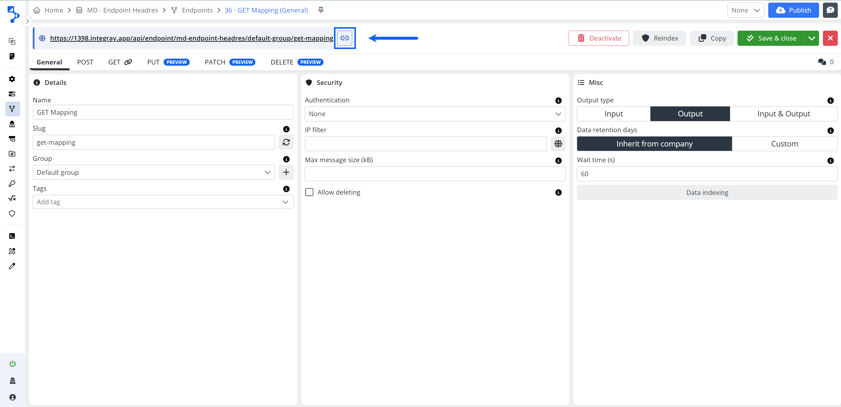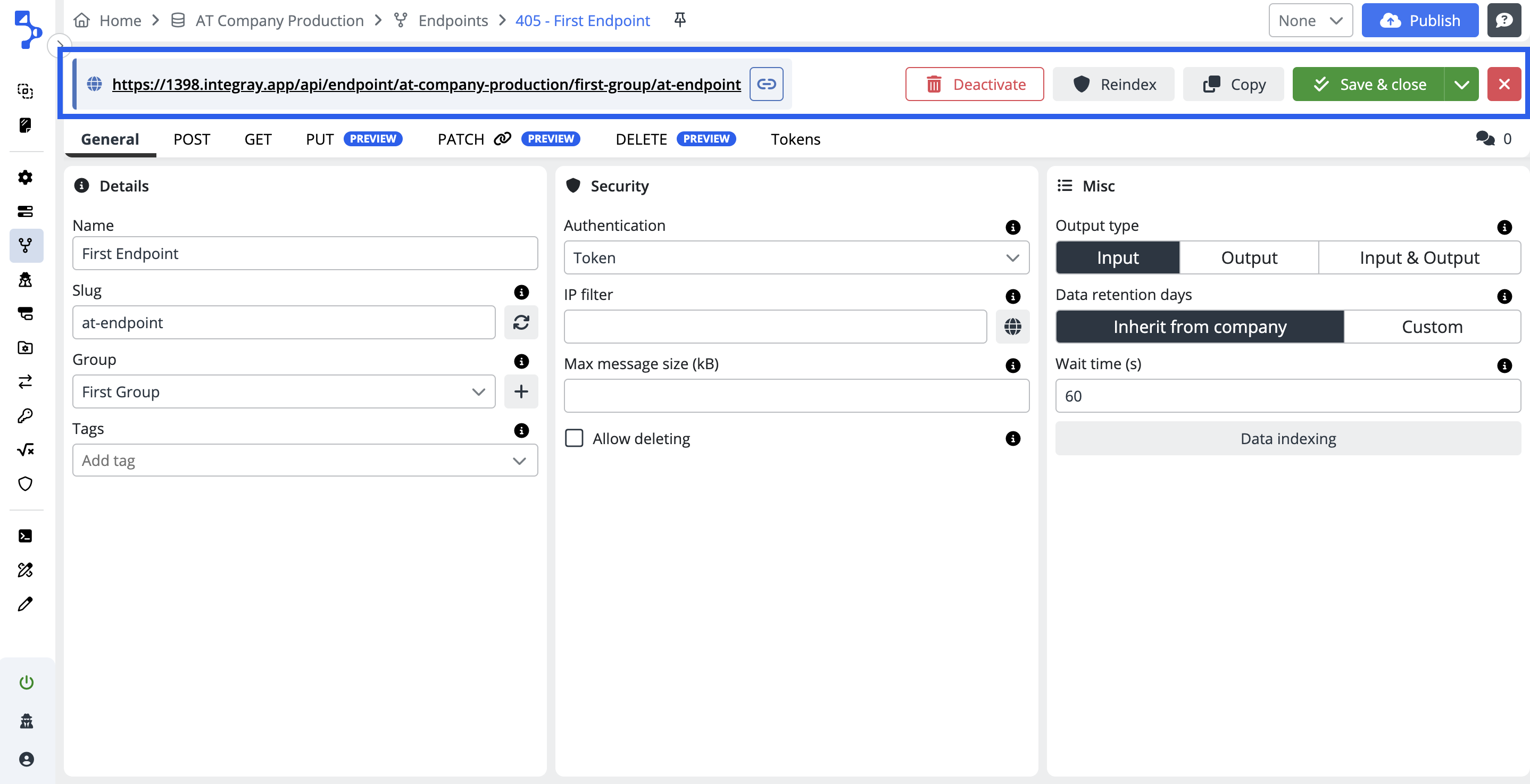 In integray, the endpoints are created and maintained in the Configuration screen > Company > Endpoints.