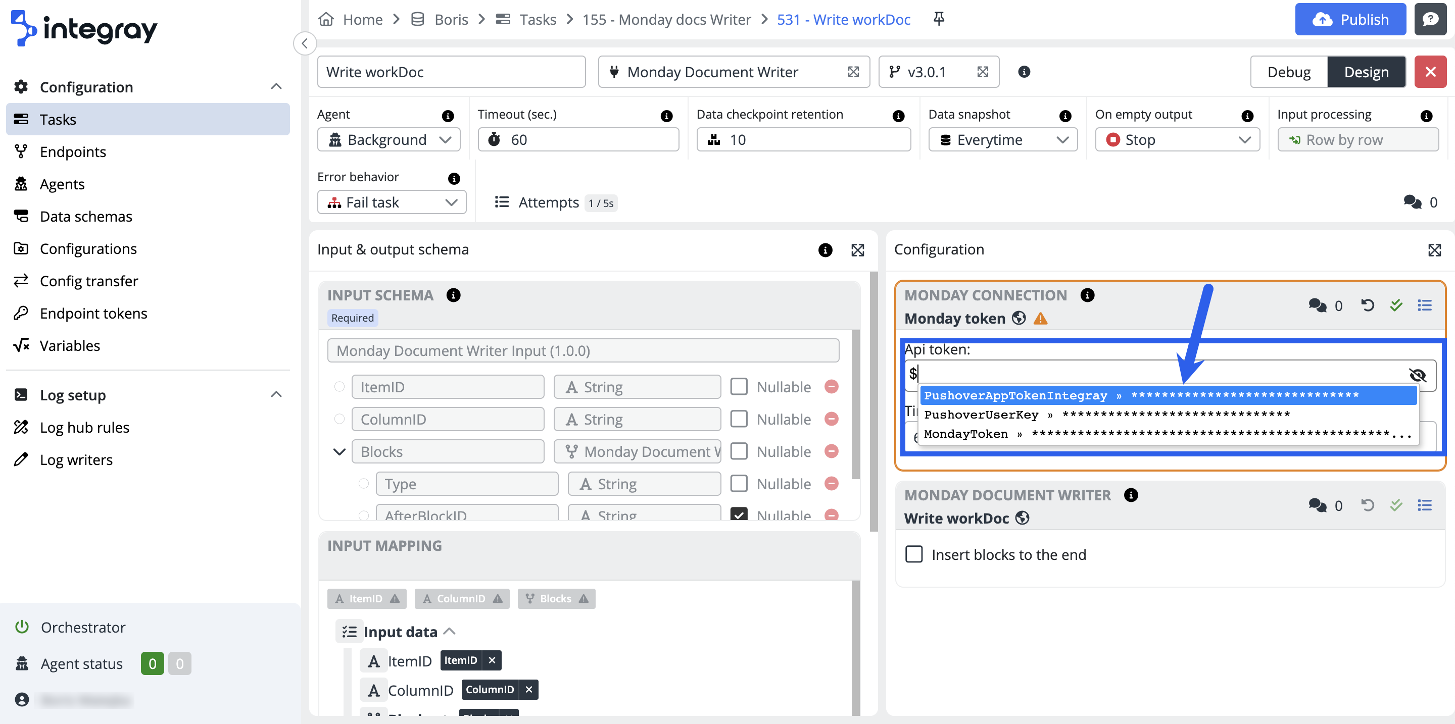 Be informed that the whisperer suggesting variables when doing task step configurations will not display the sensitive value of the variable when providing suggestions. It only displays the names of the variables.