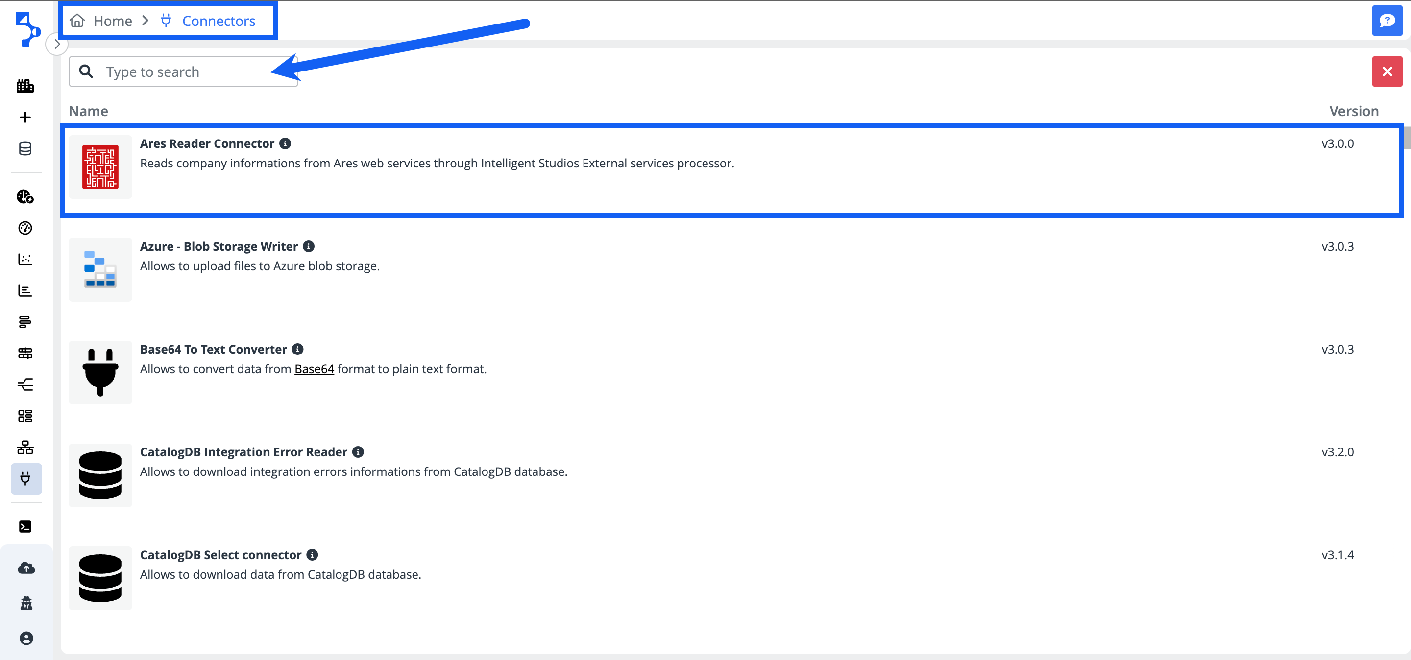 The full-text search field enables faster look-up and selection of the required connector based on any word from the connector name or connector short description.
