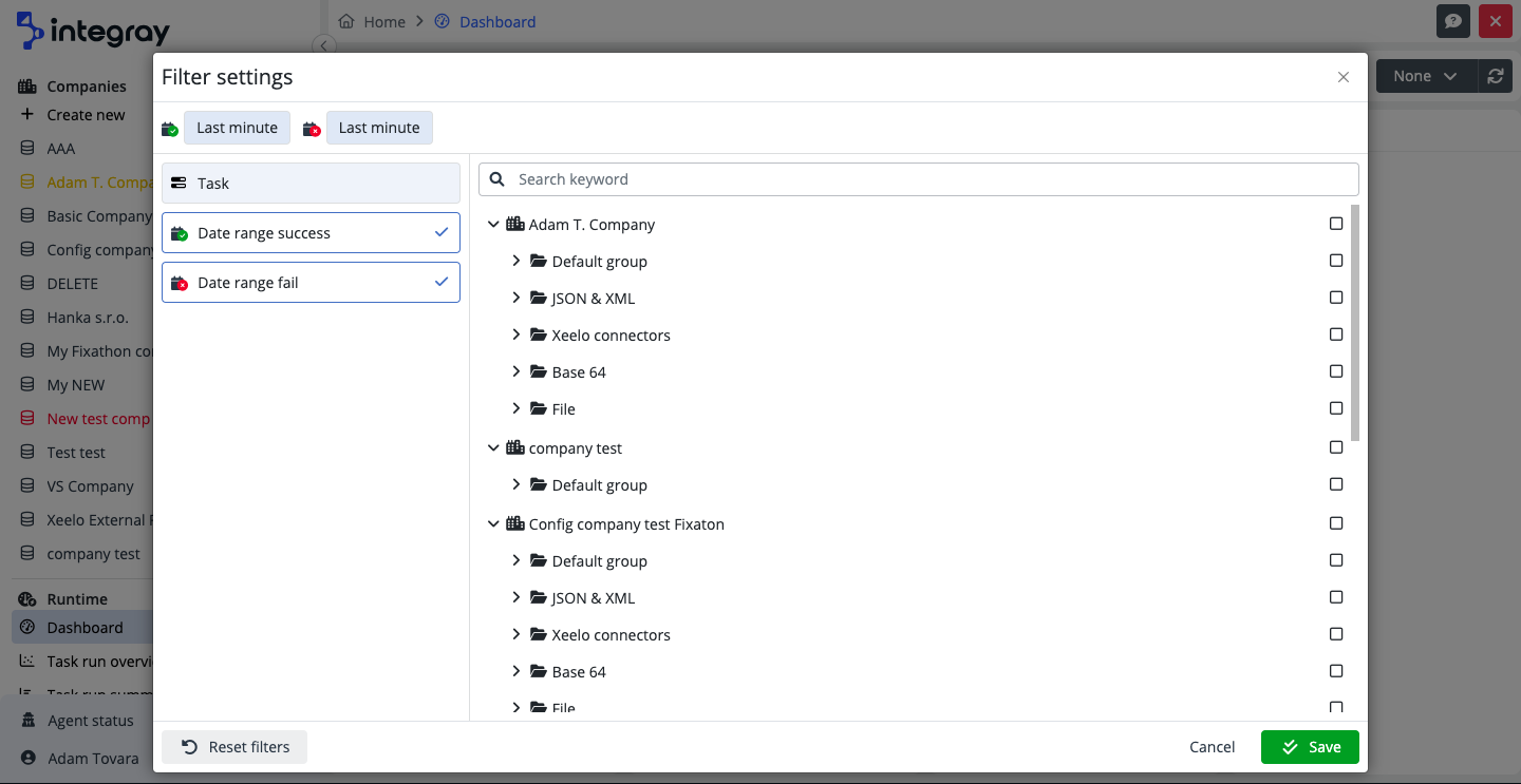 Date range success - This filters only successful tasks, using either predefined periods or custom ones.