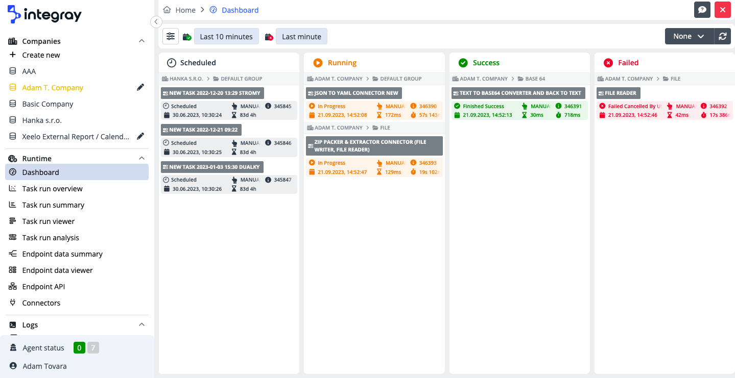 Date range fail - This filters only failed tasks, using either predefined periods or custom ones.