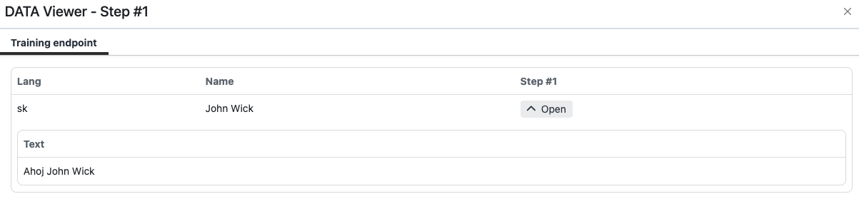 In case the task step has the data snapshots setting turned on everytime, the user can additionally have a view on the data of the processed step . Click the database icon and view the data detail.