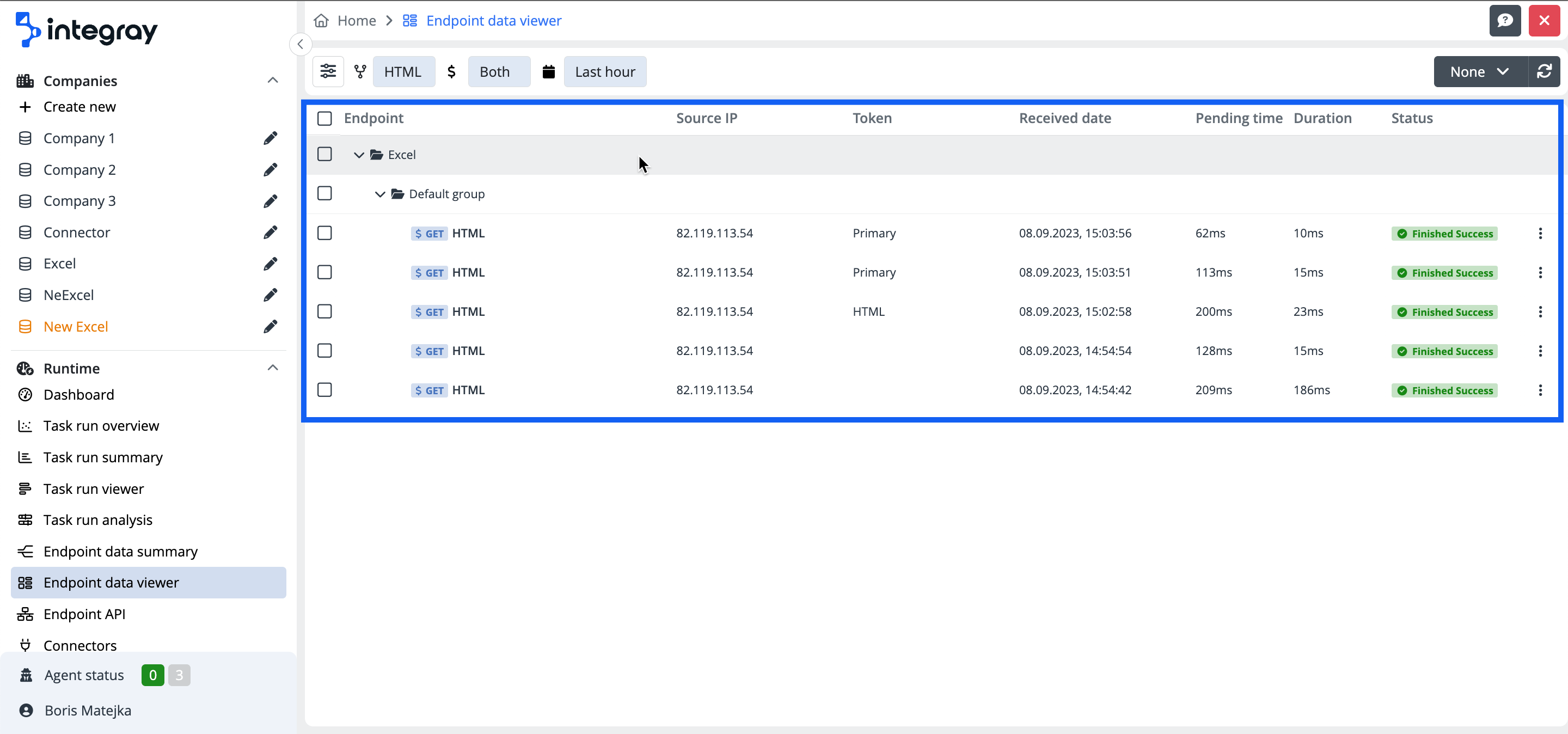 Pending time - The information on the time how long the data were waiting for the processing. It is the difference between the received time and the time when the orchestrator started to process the data. If the times are too high, it may indicate wrong setup of the task (max instances) or you have an insufficient license for the most optimal processing of your integration data flows. It also may be dependent on configured priority.