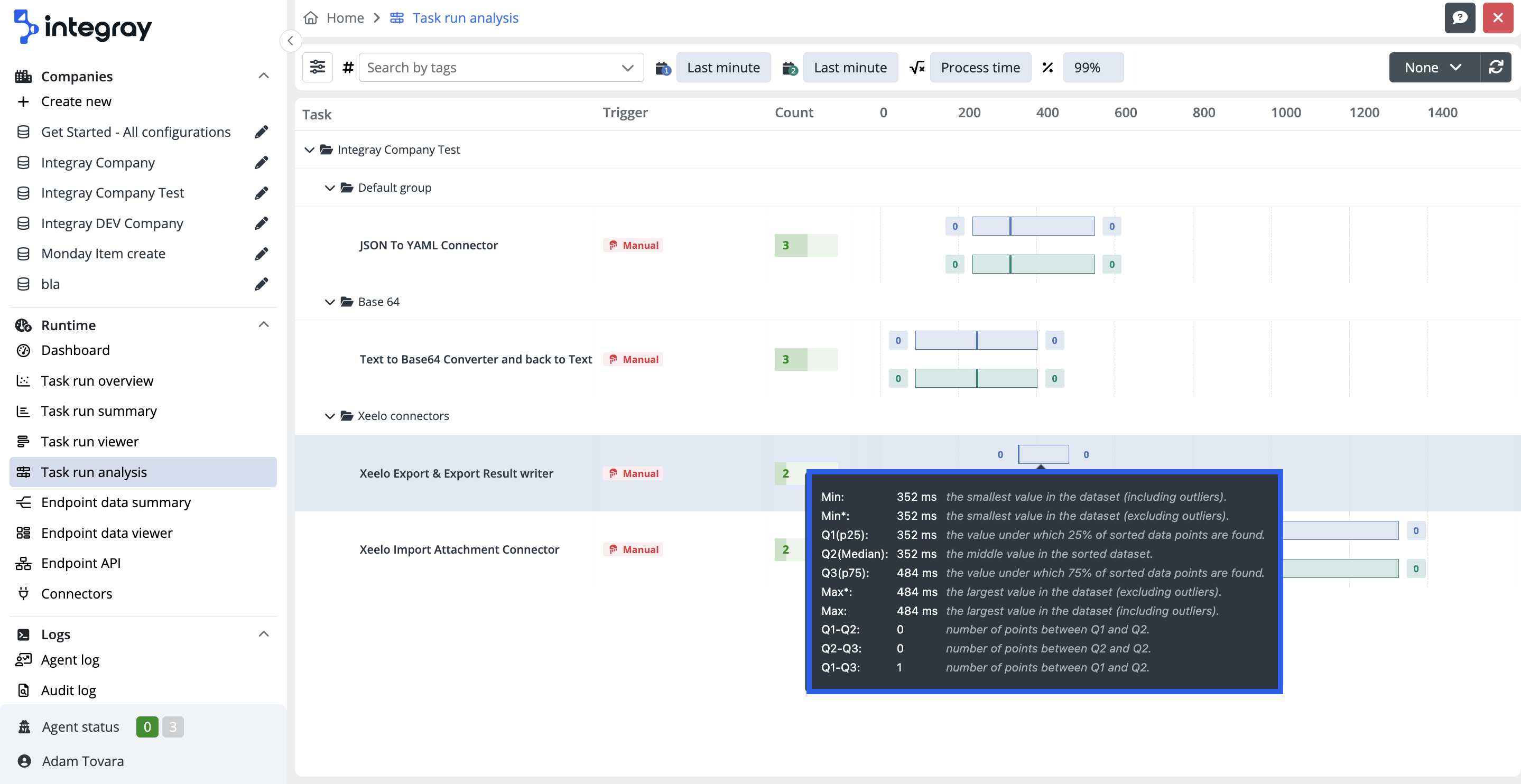 The Task run analysis tool helps you to understand the execution performance of the task runs.