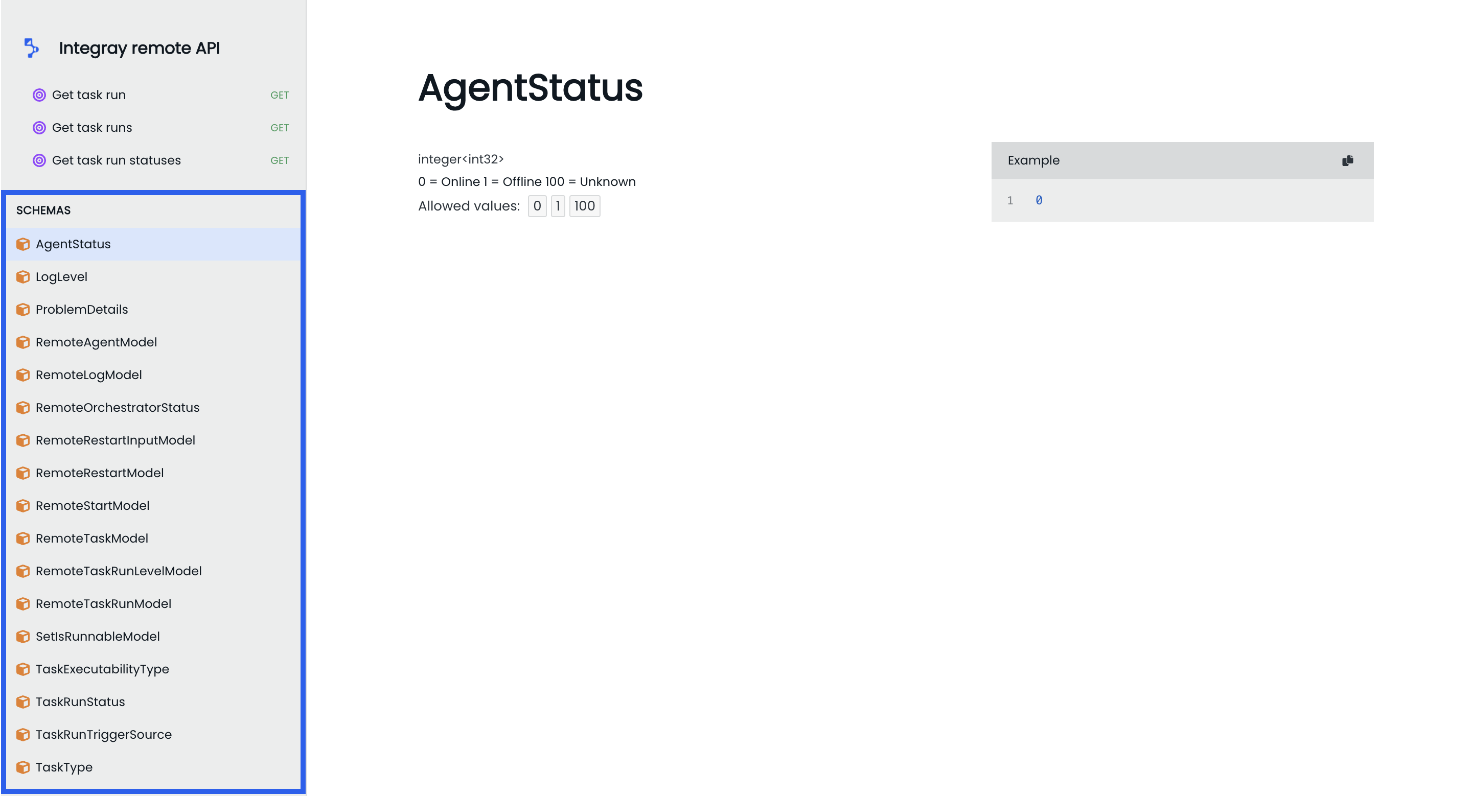 The Schemas section within the Integray Remote API documentation is an essential reference for understanding the data structure used across various API calls. Each schema defines the data models, outlining the properties, types, and constraints that govern how data is exchanged between the API and client applications.