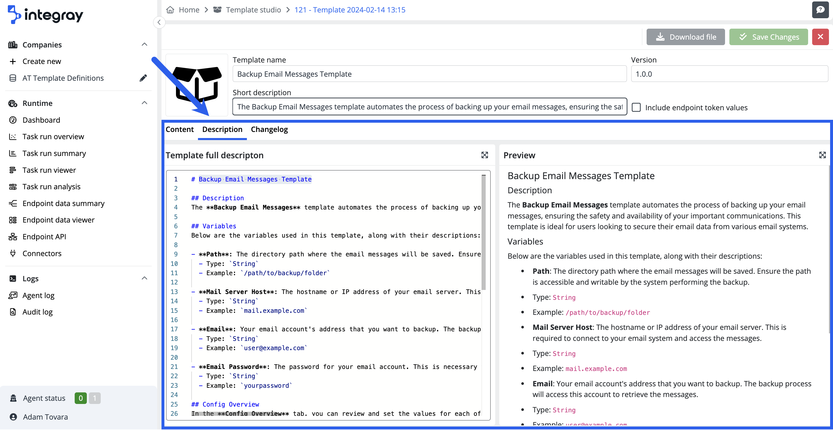 Open the template, and you can now make adjustments throughout the entire editor. It's crucial to edit the version number, modify the description to reflect any changes accurately, and, most importantly, fill in the change log. Ensuring the current version number helps track the template's evolution and facilitates easier management. An updated description provides clear insights into the template's current functionalities, while a detailed change log captures all modifications, enhancements, or fixes made. This comprehensive approach to updating ensures that your template remains organized, transparent, and user-friendly.