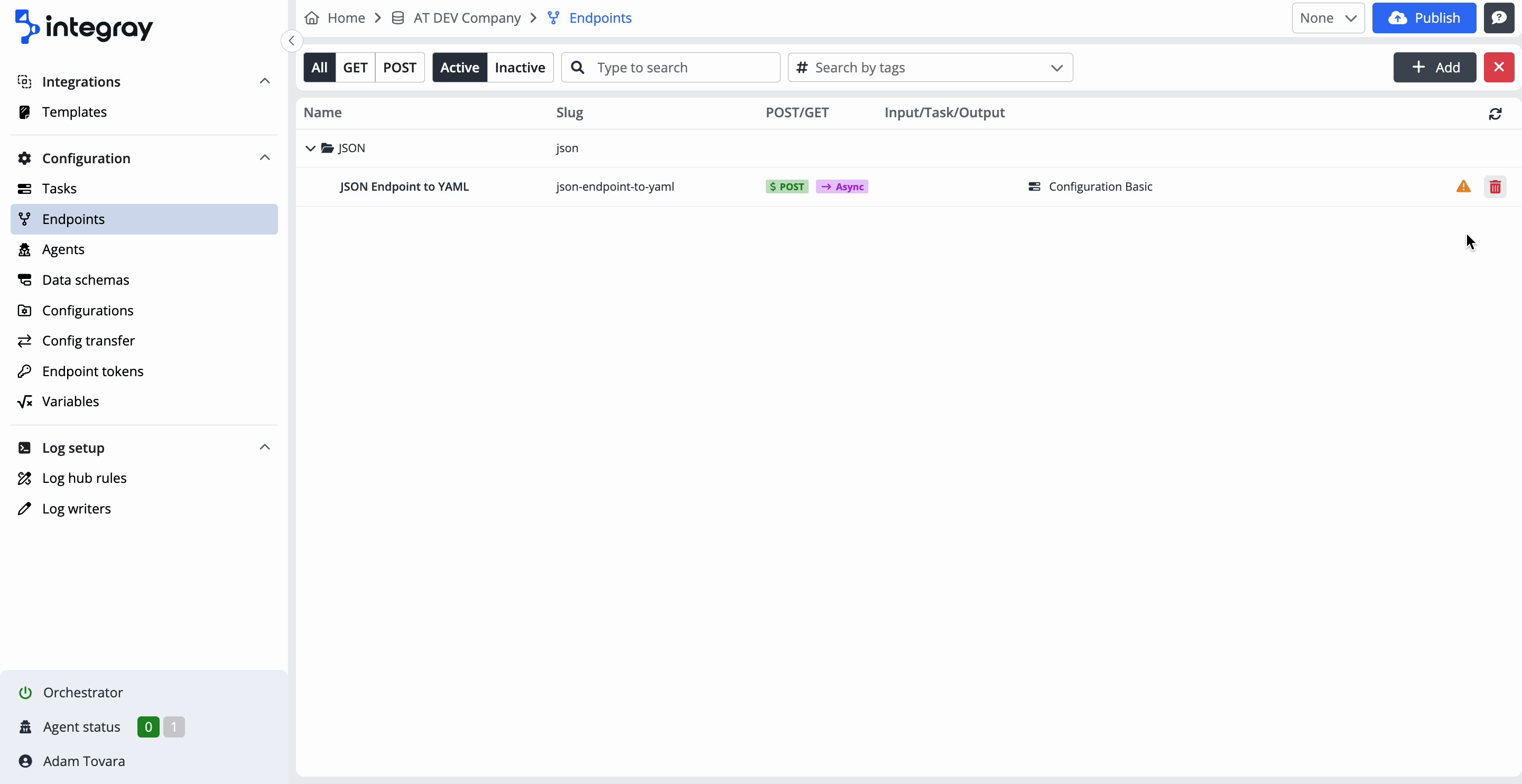 In this update to our platform, we're introducing an intuitive visual aid to the Endpoint list, enhancing the alerting system. This new feature is designed to improve the visibility of task status directly within the Endpoint list, ensuring you're always informed about the operability of your tasks at a glance.